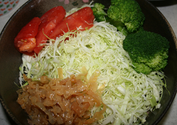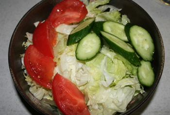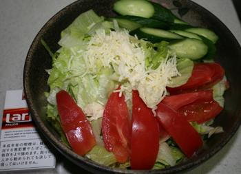 レタス・トマト・きゅうりサラダ。 毎日同じじゃーん。 でもドレッシングは変えてるから良いのですよ。うん。