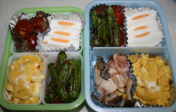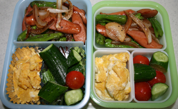 えええ。 今、今日が月曜日なんだって事に気付いた!!! もう水曜くらいと思ってた。ってか思いたかった・・・。 はい。明日の弁当2人前。 なんていうか。マジでヤル気が感じられない。 かぼちゃの煮物。 半分は小分けにして冷凍。 後日の弁当に登場予定です。 鶏肉・しめじ・ひじき・竹の子の炊き込みご飯。 味噌汁もサラダも昨日と同じ物なので掲載却下。 以上。