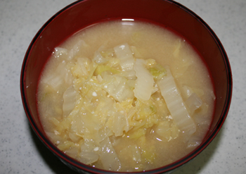 白菜の味噌汁。 明日の弁当。 ミートボールとベーコン。 どっちを取るか!?!?