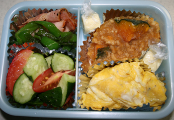 はい。明日の弁当。 って。まず先に弁当を作るのもナンだかね。 で。本日のサラダ。 レタス・ブロッコリー・トマト・チーズ。で、シーザーサラダ。 イカ。生姜醤油かけ。 なんか汚いけど豚の生姜焼き。 我が家に生姜は欠かせない。 大根と豆腐の味噌汁。 以上です。