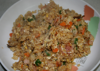 いやー。昨日のうちに更新するハズが。 休みだったので朝から飲んでたら更新どころじゃなかった!!! ちなみに直樹は午前中はお仕事でしたので昼飯にチャーハン。 たまねぎ・にんじん・ピーマン・ベーコン・卵・しいたけ・にんにくが入ってます。 そんで久し振りにワンコご飯。 キャベツ・にんじん・鶏&豚の挽肉を茹でただけ。トッピング用でございます。 ちなみに夕方は村の集まりがあって・・・これも直樹にお願いしました。 というのも過去、麻樹が出席すると泥酔して帰って来ないという事件(?)があったから。 で。夕飯には近所のオバチャンからまたまた格安で仕入れた枝豆。 あと昨日の残りのサラダ。 そしてハンバーグ。おこちゃま直樹はコレが大好物。 で。豆腐と大根となめこ味噌汁。 以上。
